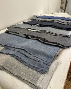 お選び頂いたマテリアルはブルー系ハリスツイードジャケット6着です